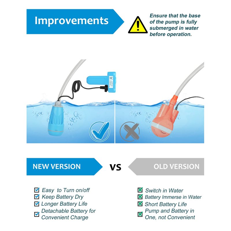 - 【Easy Assembly/Operation】Attach pump and shower head to the hose. Fully immerse the pump in water and press the switch on battery to start. The camping shower offers gentle and comfortable stream at 0.9 gal/min (3.5 L/min).