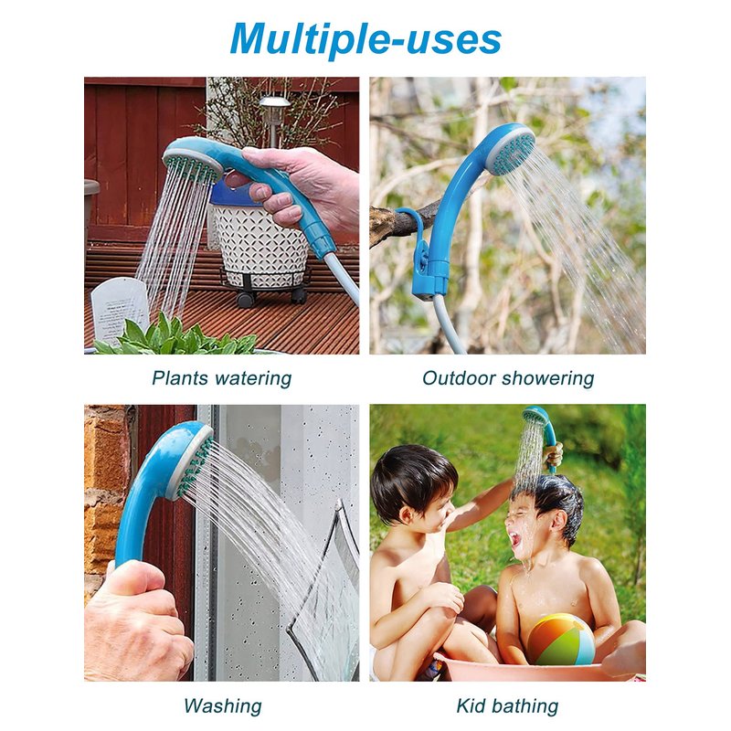 - 【Multiple-uses Portable Shower】Suitable for INDOOR/OUTDOOR showering, camping, BBQ, hiking, traveling, kid bathing, pet cleaning, car washing, plants watering, windows and backyard cleaning. Ideal gift for family, friends on Christmas, Birthday, Father's Day, Mother's Day, Children's Day, etc.