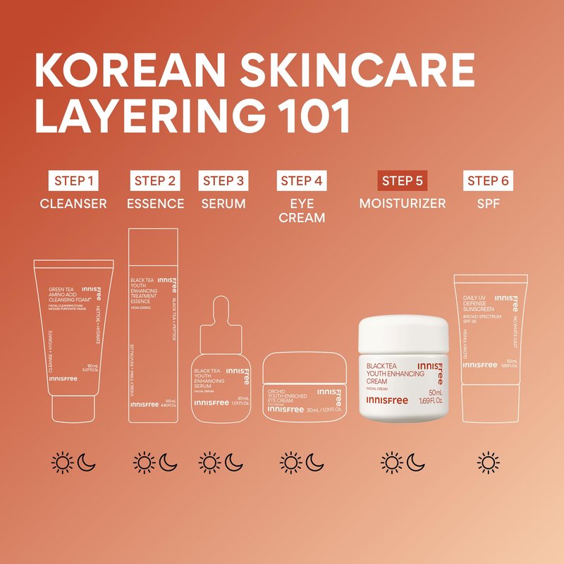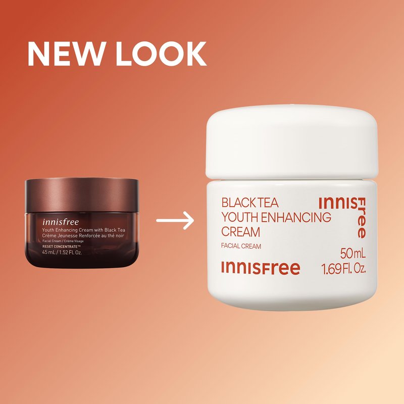 innisfree Black Tea Youth Enhancing Cream, Korean Moisturizer with Hyaluronic Acid for Firming and Glow