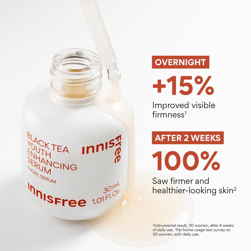 innisfree Black Tea Youth Enhancing Serum, Korean Serum with Niacinamide for Firming and Glow