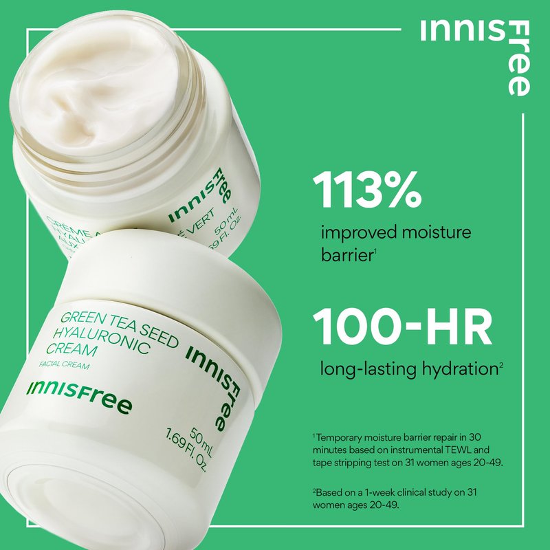 innisfree Green Tea Seed Hyaluronic Acid Cream With Barrier Boosting Complex and Ceramide, Korean Hydrating Face Moisturizer and Balancing Cream