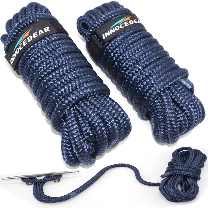 INNOCEDEAR 2 Pack Premium Navy Blue Dock Lines - 15' / 25'/35' with Eyelet.Double Braided Nylon Dock Line/Mooring Lines.Hi-Performance Marine Boats Ropes