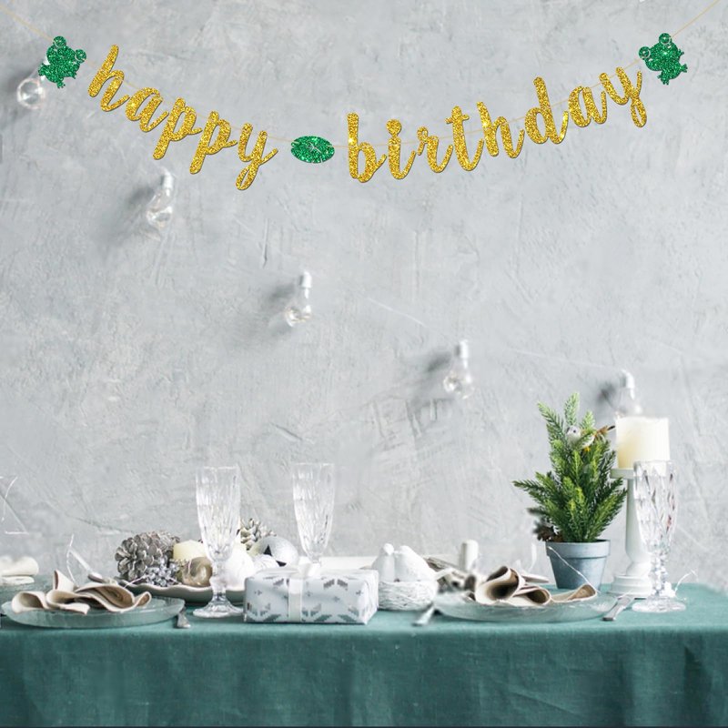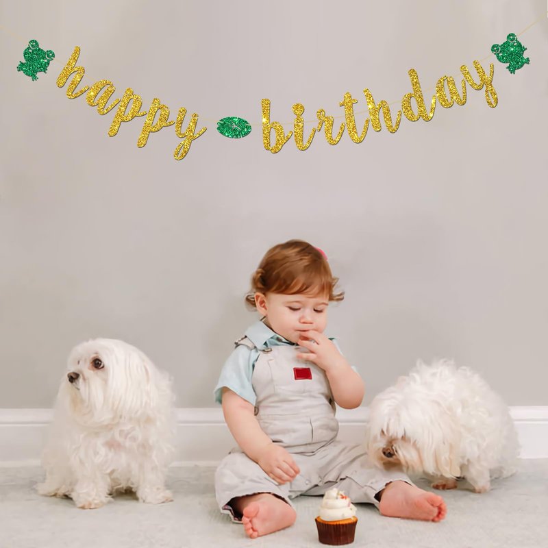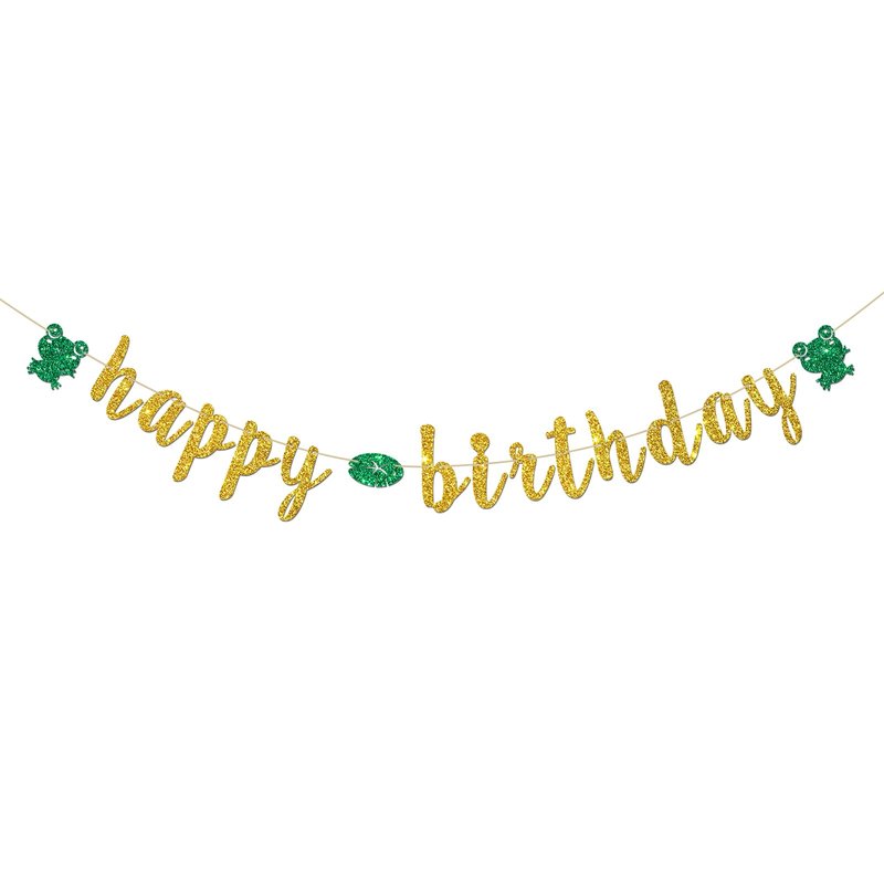 INNORU Frog Happy Birthday Banner, Reptile Animal Frog Party Decorations, Children Boys Girls Rain Forest Birthday Party Banner, Cute Frog Birthday Party Decor Supplies, Gold Glitter