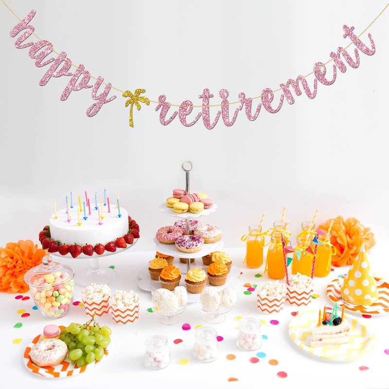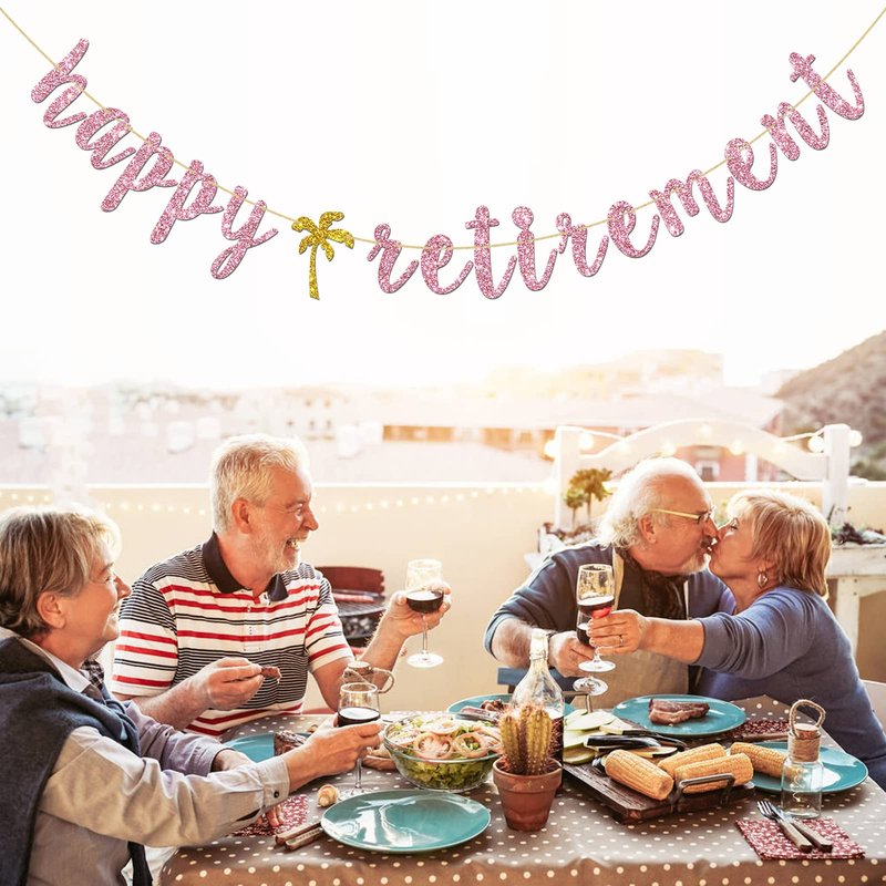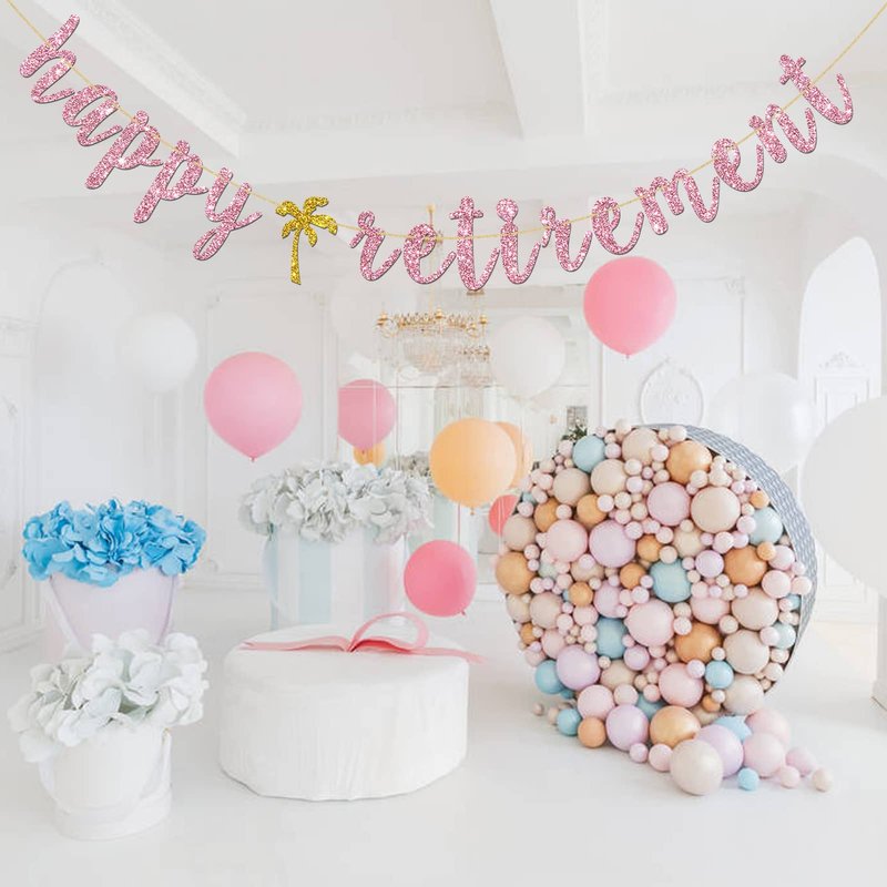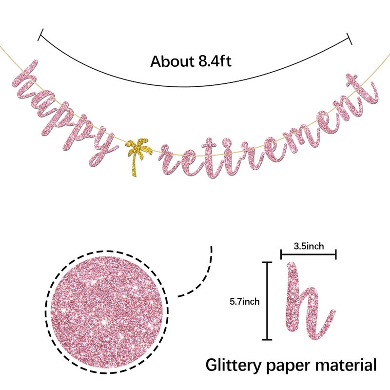 INNORU Happy Retirement Banner - Pink Glitter Welcome Back- Retired AF, Retirement Party Decorations for Women