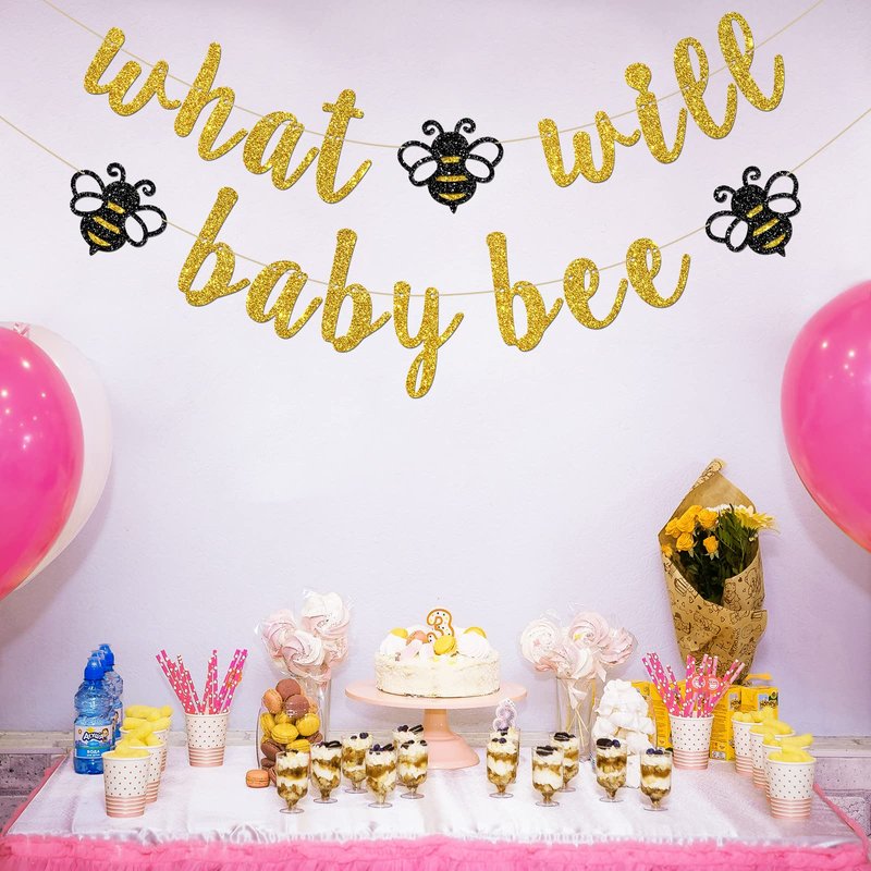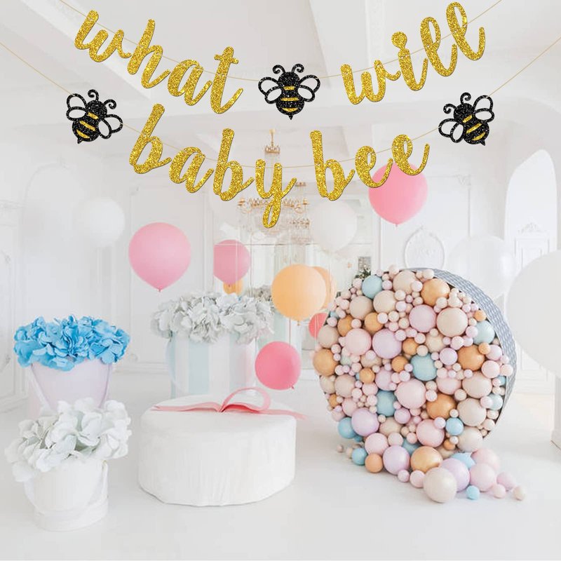 INNORU What Will Baby Bee Banner, Bumble Bee Theme Baby Shower Party Decorations, Mommy to Bee Daddy to Bee Party, Bee Boy or Girl Party Decorations, Gold Glitter