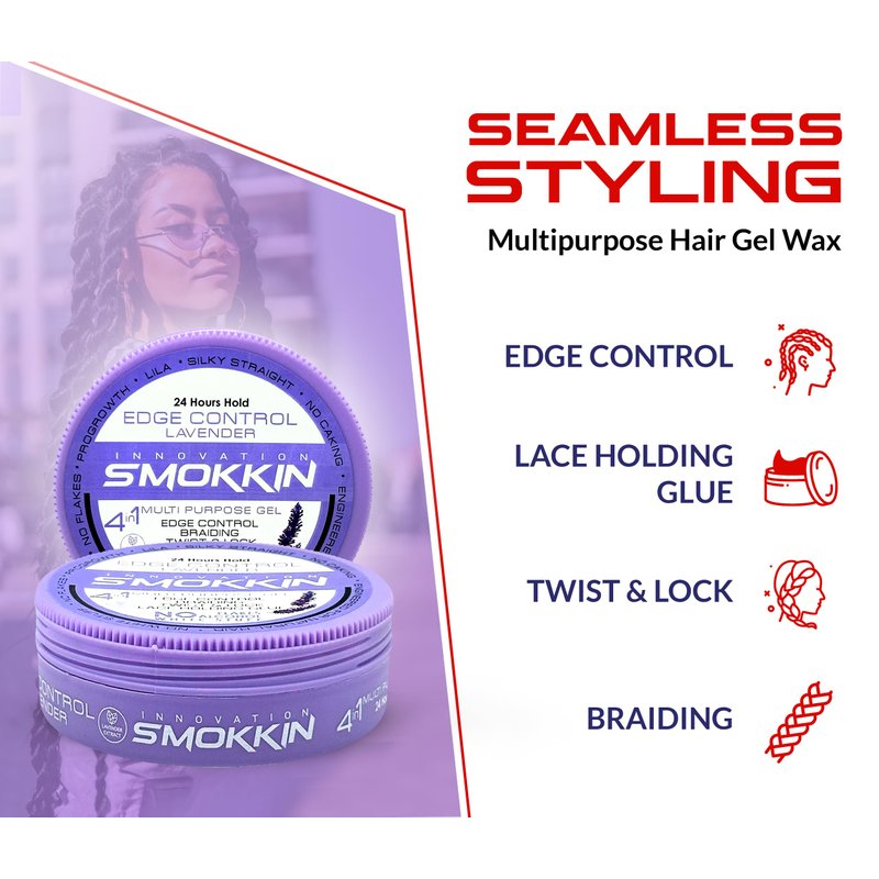 INNOVATION SMOKKIN Strong Hold Hair Gel, Edge Control, Braiding Gel, Locking & Twist Styling Wax, Versatile Styling Locking Gel Applicable To Diverse Hair Types. (Lavender 5.09 Fl oz)