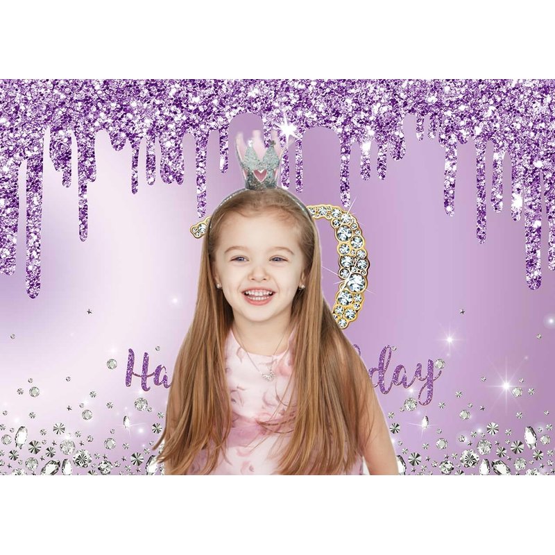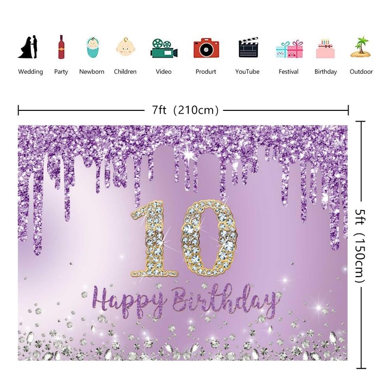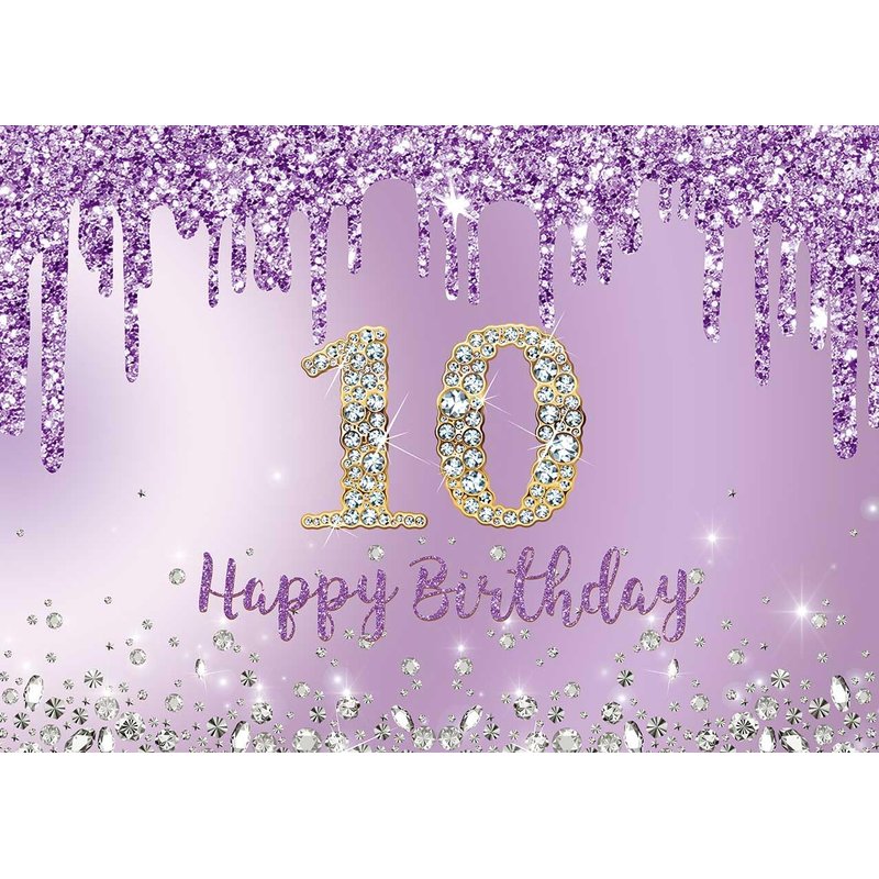 INRUI Purple Happy 10th Birthday Photography Background Girls Sweet Ten Years Old Birthday Party Decorations Backdrop 7x5FT