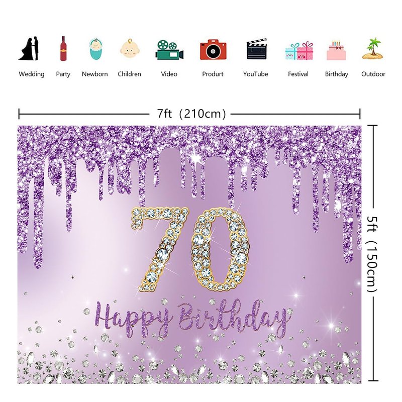 INRUI Purple Happy 70th Birthday Photography Background Girls Sweet Seventy Years Old Birthday Party Decorations Backdrop 7x5FT