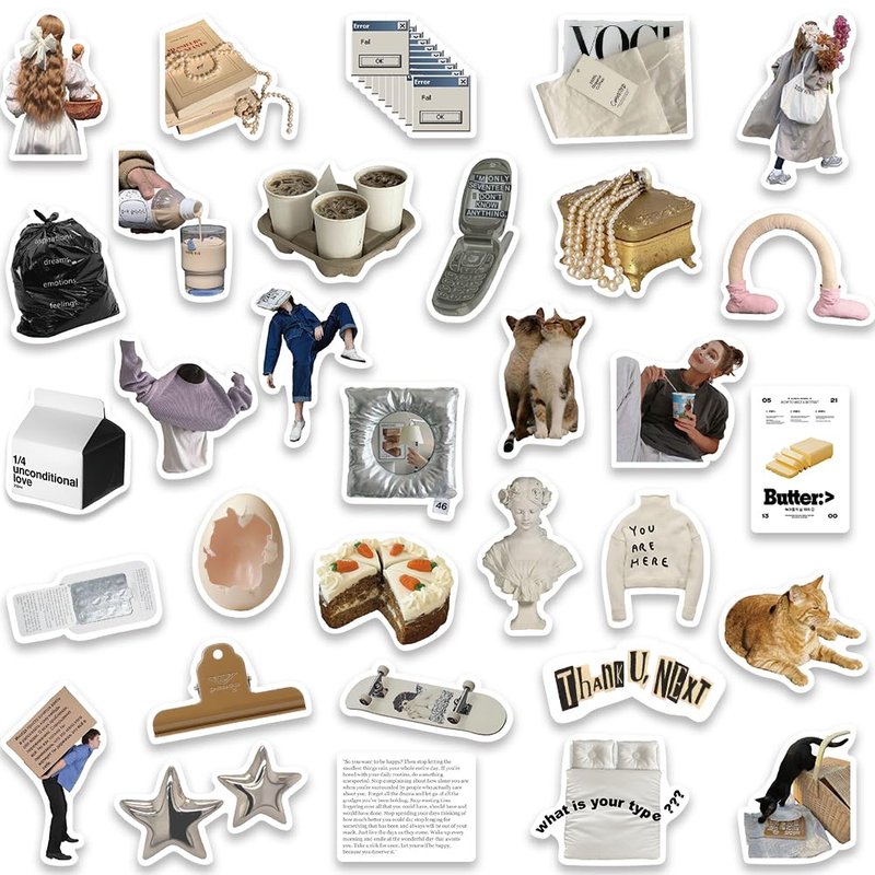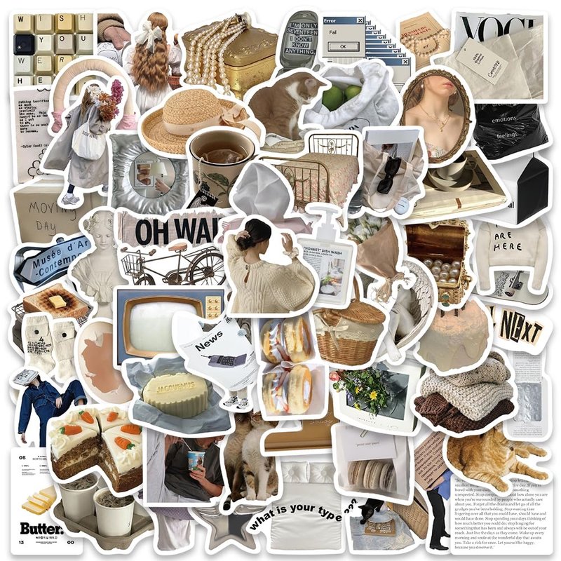 - INS Aesthetic Stickers - All of 63PCS unique JAURNEY Stickers without any duplicate stickers, and sizes range from 2 to 3.5 inch. All the cute stickers shown in the picture are exactly what you will get in the package.