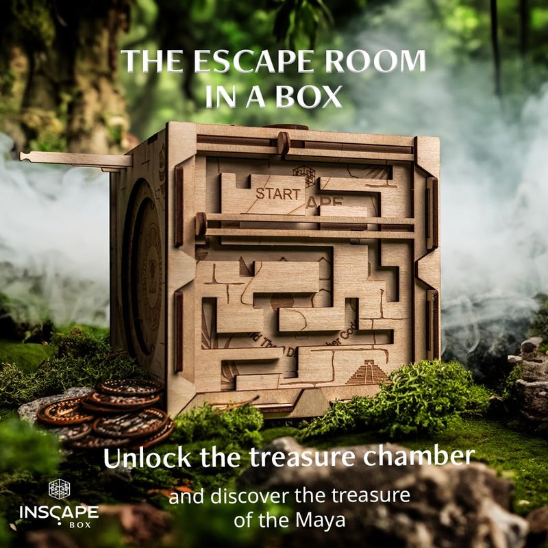 - 🎲 Escape Room Puzzle Box: Get ready to be challenged by our puzzle boxes for adults! Find out if you’ll manage to open the treasury and unveil the Maya´s treasure with the new INSCAPE creative game that will push your limits to the edge.