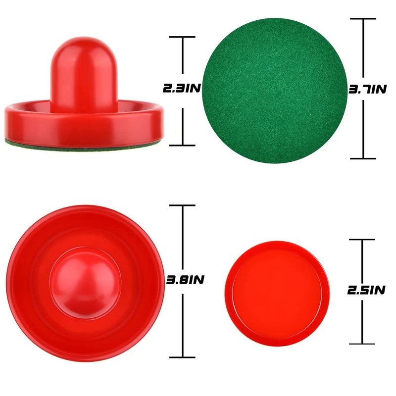 - [PACKAGE INCLUDES] - An amazing value of 4 air hockey pushers, 4 protective paddle felts, and 8 air hockey pucks to be the perfect gift of replacement hockey pucks
