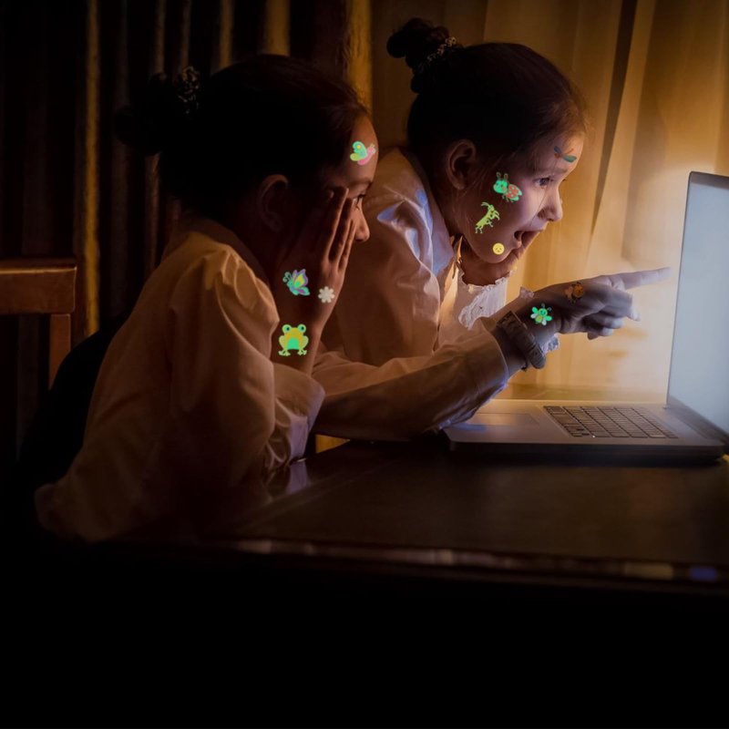 - Luminous design:These bugt tattoos featuring with luminous effect, which will make you be unique at the party! Tips:Illuminating these tattoos a few minutes in advance under a lamp or sunlight will make the tattoos work better in the dark.