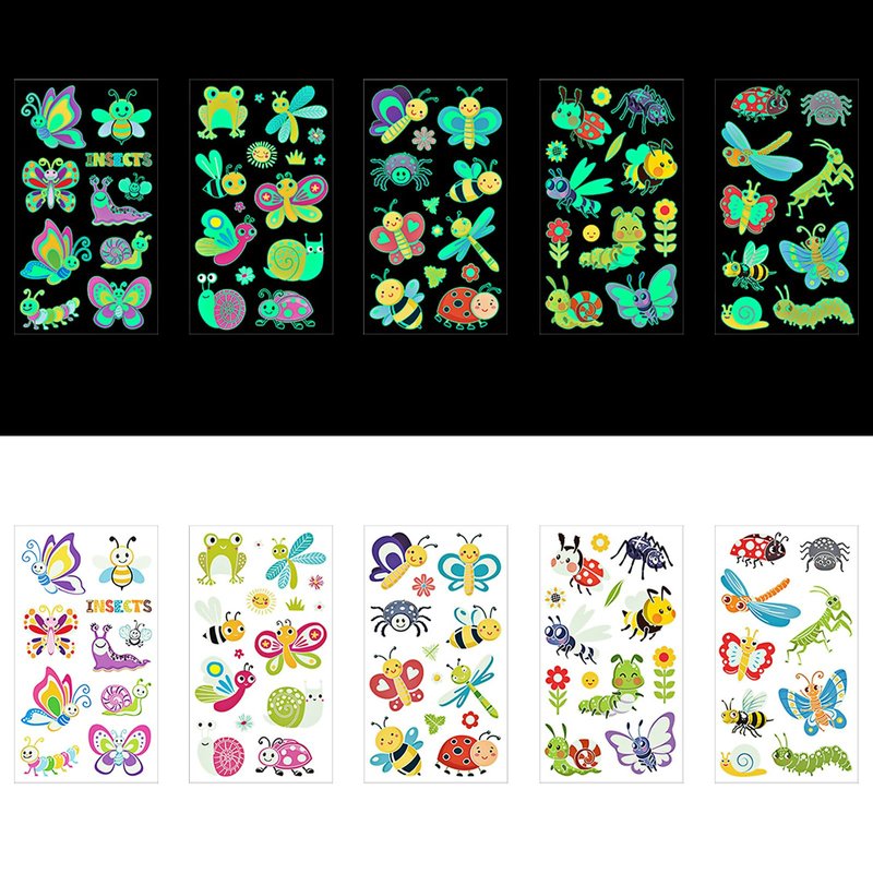 Insect Temporary Tattoo for Kids,10 Sheets Luminous Cute Reptile Bug Nature Waterproof Glow In The Dark Tattoo Sticker for Birthday Party Favors Goodie Bags Stuffers Party Fillers