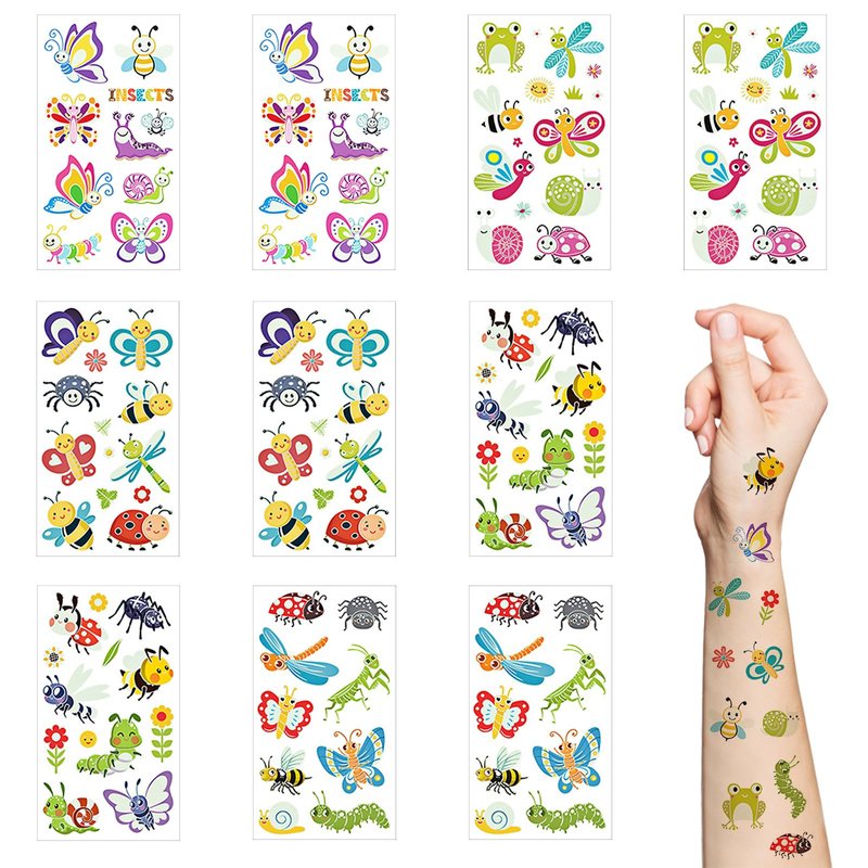 - Package includes:Comes with 10 sheet various styles of insect stickers, you can share them with your family and apply them to makeup together!Each sheet tattoo size is 4.7x2.75inch/12x7cm.
