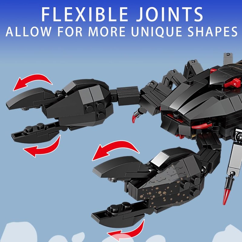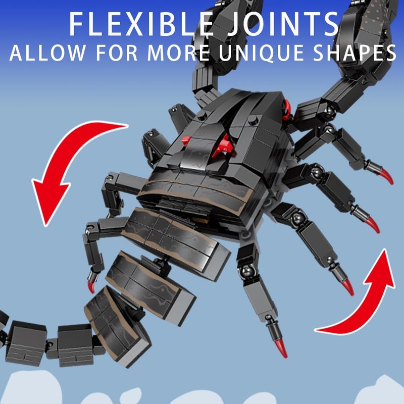 - 【Meticulous Details】: This is a very realistic scorpion building block toy. When you assemble all the building blocks, the details of the scorpion come to life. The scorpion's body, legs, claws, and tail can all swing flexibly, allowing you to create many different and cool shapes. At the same time, we have added cooler color schemes to the product, making it look more like a mysterious character in nature.