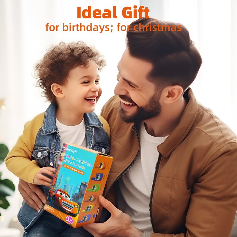 - 【Ideal Toy Gifts For Kids】 Cars walkie talkies packaged in a beautiful gift box as great choice for Valentine’s Day, Halloween, Christmas, Easter gifts for boys and girls, and the best kids interactive game for 2 3 4 5 year old boys girls!! The best choice for camping indoor outdoor activities!
