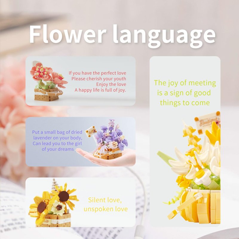 - Flowers Bouquet Building Set Blocks Toys Gifts for Girls Christmas Birthday, Packaging with gift box, Begin your journey to joyful with this charming assortment of building block flowers