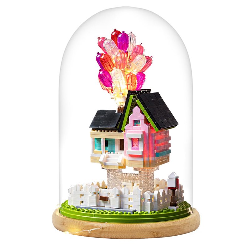 Insgen House Building Blocks Kit Toys Set, Mini 1243 Pcs Micro Bricks Collectible Creative Teen Girl Gifts Age 14 and Up, Dust Cover, Wooden Base Up Balloon Castle Toys DIY Decoration Home