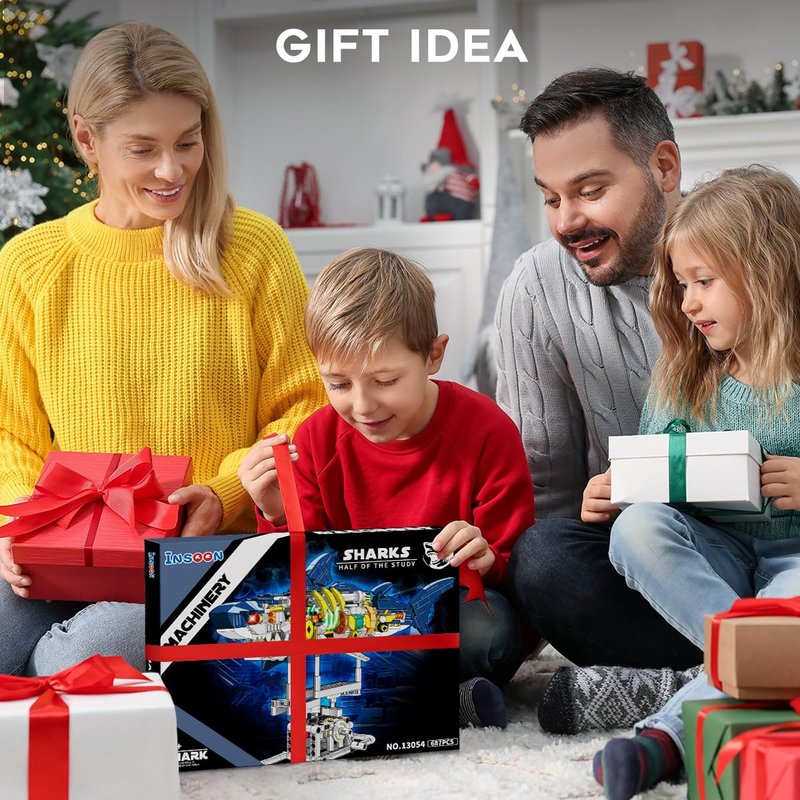 - Creative Machinery Shark Set - INSOON shark toy building set consists of a semi-mechanical fish body and a support base with a built-in gear system, cleverly combining shark elements with machinery. Providing children with extraordinary visual experiences and immersing them in a marvelous world of underwater exploration. It is perfect for children aged 12, 13, 14 and above