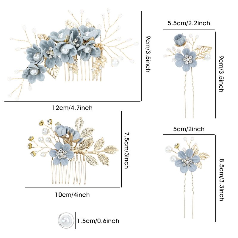 - Design: Well made bridal hair accessories. Flower hair side combs and hair pins with artificial rhinestones and pearls decoration. Beautiful look and easy to use. They are good assistant for you to DIY your own hairstyles. Make women, brides or bridesmaids more charming and graceful.