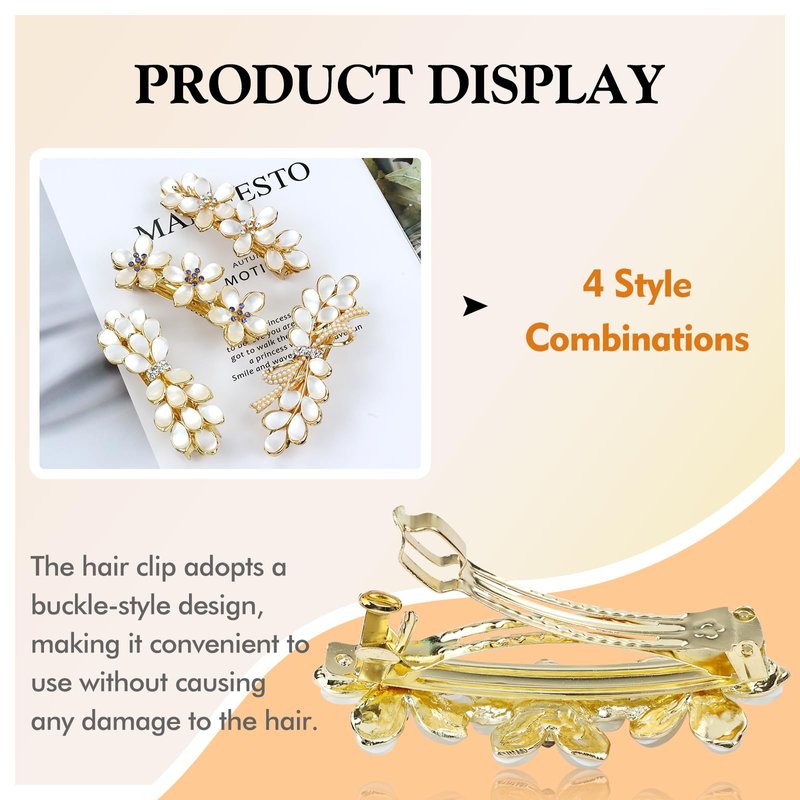 inSowni 4 Pieces Decorative Glitter Opal Rhinestone Pearl Gems Flower Bow French Barrettes Snap Hair Clips Gold Metal Automatic Spring Clips Hairpins Headpieces for Women Girls