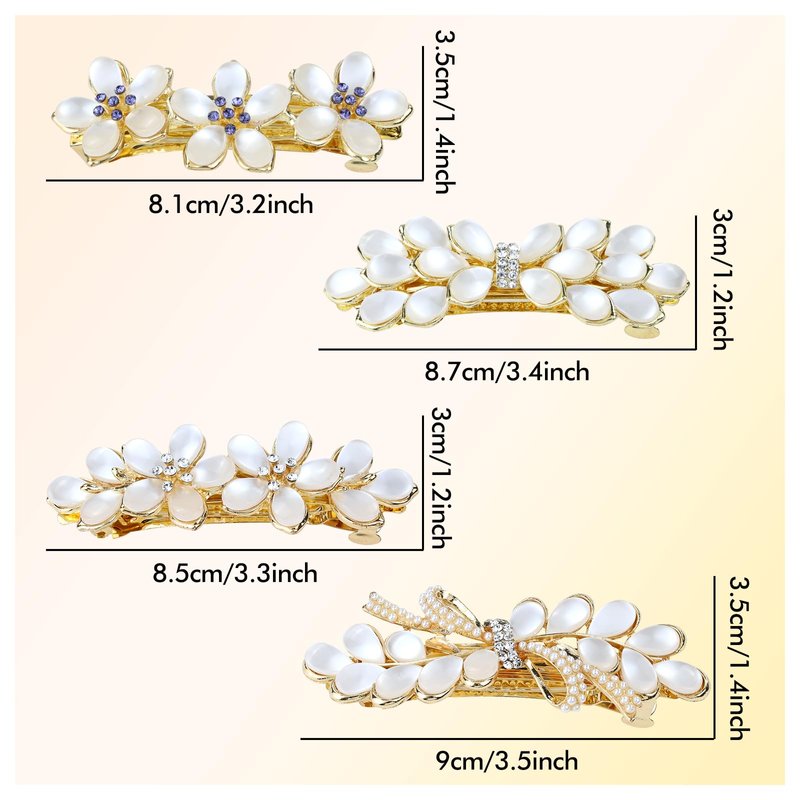 - Design: Adorned with meticulously arranged opals, rhinestones, and pearls, these French hair barrettes for women boast a captivating aesthetic. The intricate design showcases artfully arranged elements, such as flowers or bows, enhancing their allure and ensuring they stand out as an eye-catching and sophisticated accessory for various occasions.