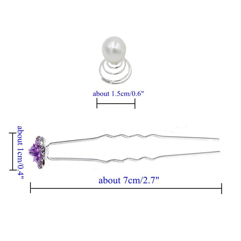 - Color: Purple. What you get: 40pcs U-shaped hair pins+6pcs twist pearl clips in pretty gift box.