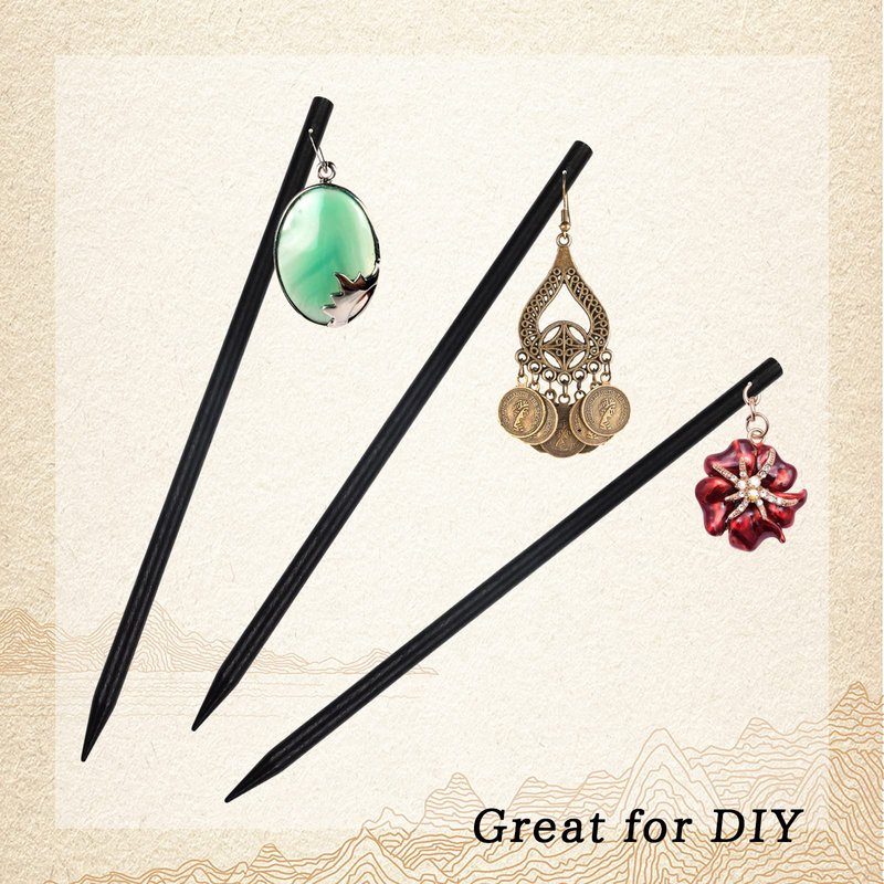 - Design: Our wood pencil hair pin with smooth surface and point make it slide in your bun without causing damage to your hair. With a classic and retro design, these hair sticks are suitable for Hanfu and Chinese chopstick hairstyles. These blank wooden hair sticks with tiny holes on the top also allow you to unleash your creativity and customize them according to your liking. You can thread some pretty objects like gems, beads, pearls, flowers to make your favorite hair sticks.