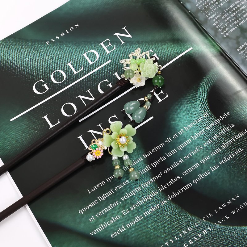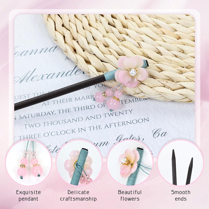 - Material: Crafted from sturdy wooden hair sticks embellished with delicate plastic flowers and beads, these vintage Asian Chinese traditional Hanfu flower hair sticks perfectly blend elegance and durability. The precise choice of materials ensures a chic and timeless accessory for various hair types and styles. These wooden hair sticks are an ideal choice for those seeking a balance between tradition and modernity.