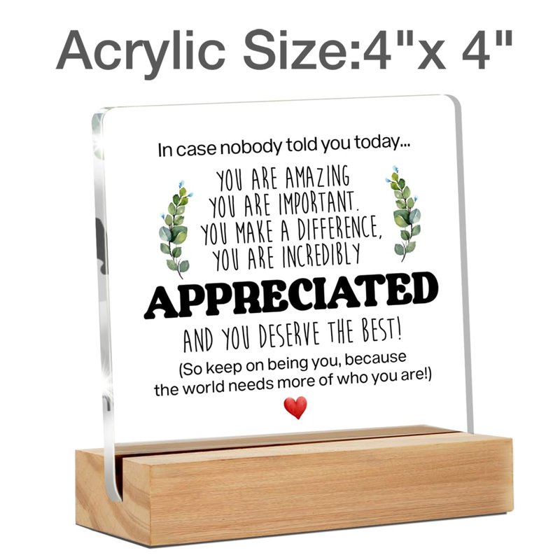 - Perfect Size - 4 x 4 inches acrylic sign, 4 x 1.5 x 0.8 inches wood stand. Perfect size to decorate any tabletop.