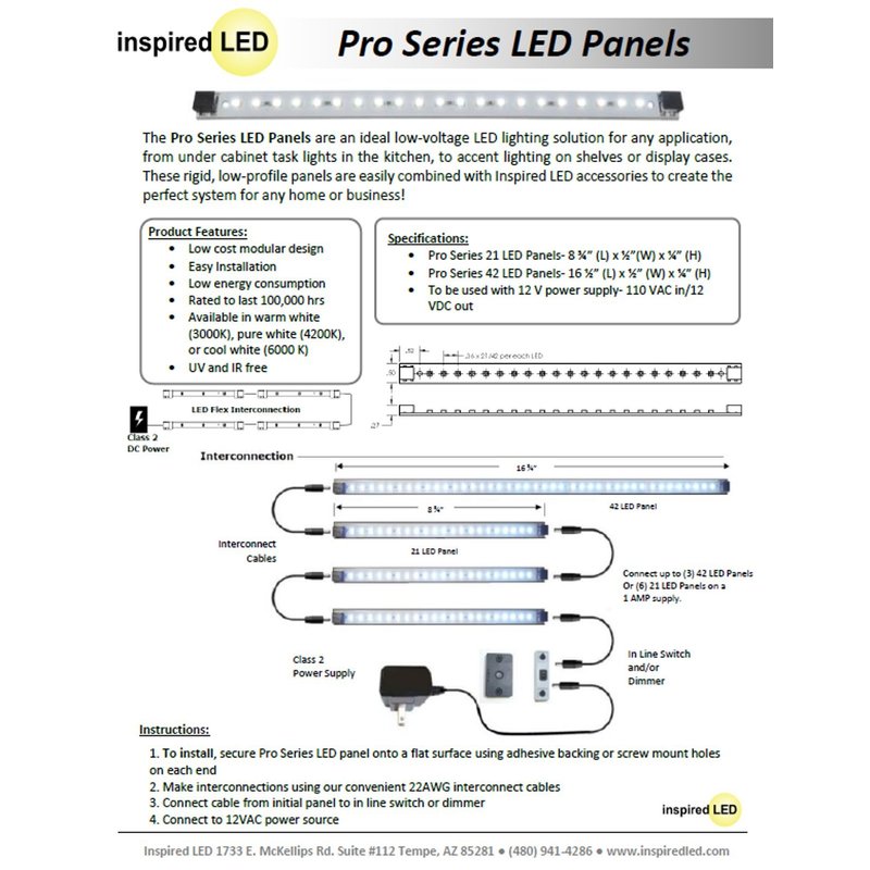 - BEST UNDER CABINET LIGHTING These 3 panels can be used to complete a job, or added to other Inspired LED panels. They have a small sticky back or two places for screws included There are easy to follow instructions included, see second picture. Three panels (8-3/4"each) with 3.5mm x 1.3mm (F) connectors, a switch, and a power supply with screws and clamps to hold wires in place. Compatible with our magnetic switch . Call us to connect with our lighting designers We can also customize LEDs