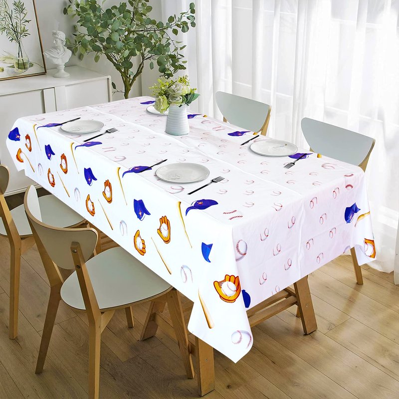 - Valued Package: 4 pack baseball themed plastic tablecloth, measured: 51*86 inch(130*220cm). Proper size for party tables and set ups.