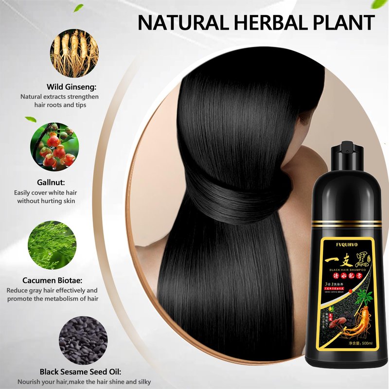 Instant Black Hair Shampoo 500ml for Men & Women, 3 in 1 Black Hair Dye Shampoo, Natural Black Hair Color- 100% Gray Hair Coverage in Minutes, Black Hair Color for Home Salon Use 17.6 Fl Oz (Black)