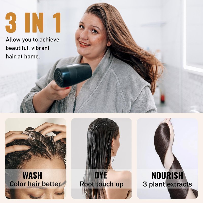 - 3-4 WEEKS GUARANTEE---Our 3 in 1 hair dye shampoo is the ultimate dye - locking tightly to your follicles and won't staining your scalp, without clogging pores, for that full-bodied, knock-out look that stays put for 3-4 weeks.