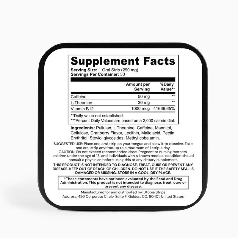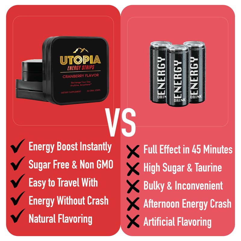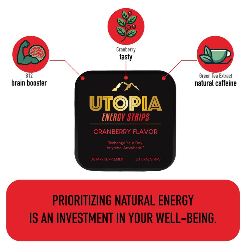 - Utopia Energy Strips bypass digestion which allows the boost of caffeine and B12 to make a difference almost instantly. These travel sized strips are the perfect tool to ensure that you rise above the most exhausting of days!