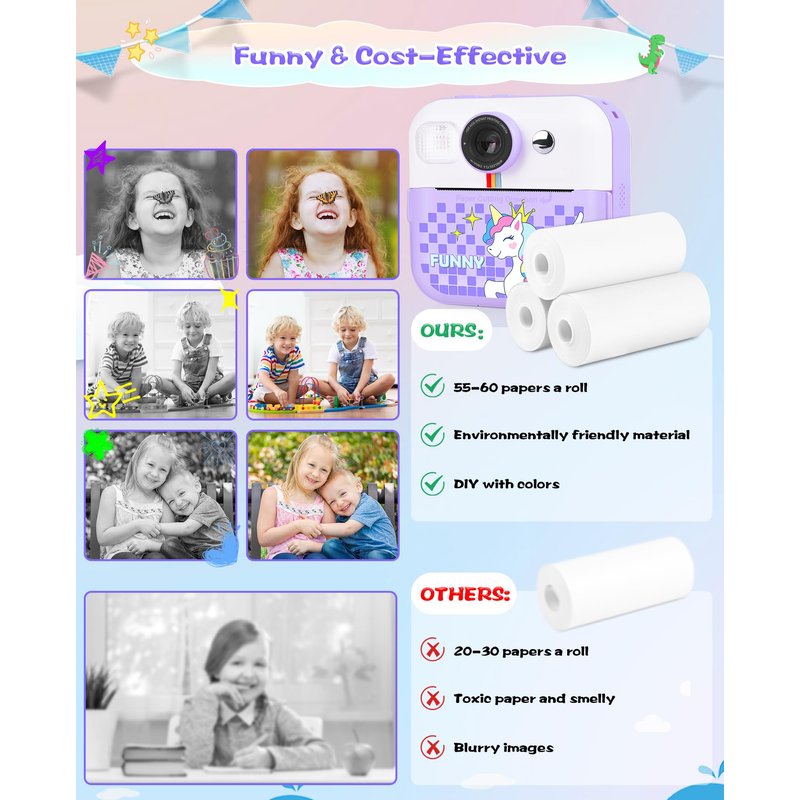 - Gift for Kids: Our kids camera instant print is not only fun and educational but also makes for the perfect Birthday, Christmas gifts for kids aged 3-12. Let your child have their first camera and capture memories they can always look back on. Parents can now breathe easier knowing their child has their camera and won't be using their smartphones