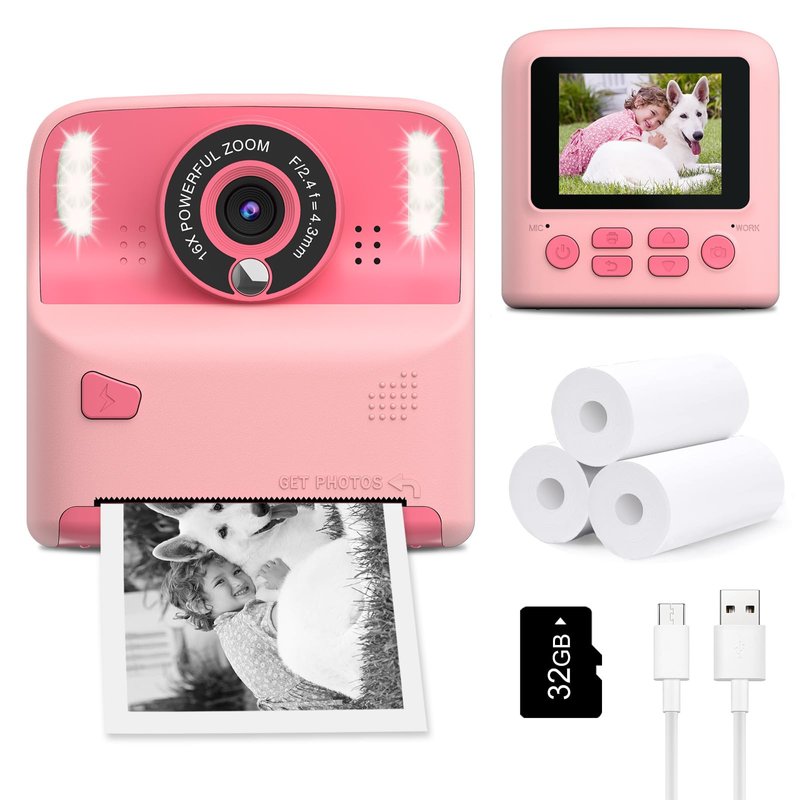 - Fun Kids Selfie Instant Print Cameras: This instant print camera for kids captures special moments with the click of a button, allowing them to take adorable selfies with ease. In just one second, it can print out a black and white photo for kids to hold and admire. Plus, it stores color photos on the 32GB SD card for later, ensuring that no perfect moment is ever forgotten. The camera also includes 3 volumes of printing paper for doodling and adding extra fun to the selfie-taking experience