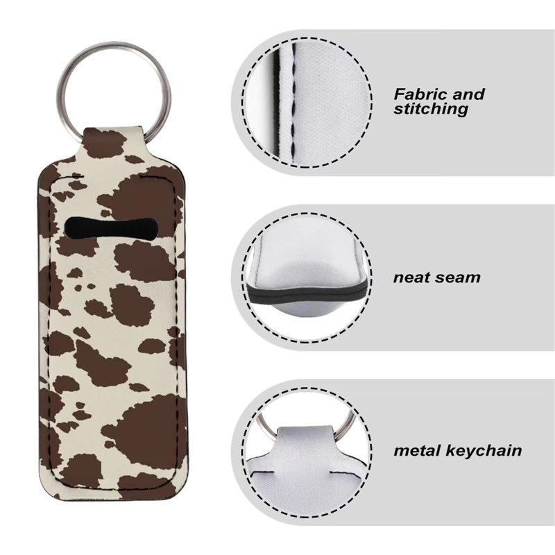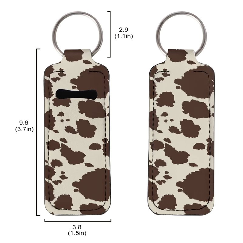 INSTANTARTS Cow Hide Print Key Ring Chapstick Holder 2 Packs Retro Brown Lipstick Lipgloss Sleeve Holder with Keychain Lip Balm Holder for Lanyards,Key Chains