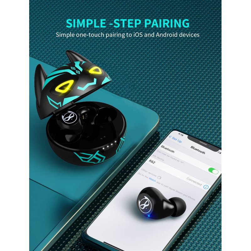 - Shape and Weight: Designed ergonomically and lightweight, the structure of the K62 wireless Bluetooth earphones was researched on the ear canals of thousands of people before its design. Suitable for most people's ear canals. These wireless Bluetooth earphones are compact and lightweight, with almost no weight when worn in the ear. Each earbud weighs only 0.127 ounces, and the earbud size is 0.787 * 0.591 * 0.591 inches. The charging case size is 2.01 * 2.01 * 2.0 inches, making it more convenient to carry.