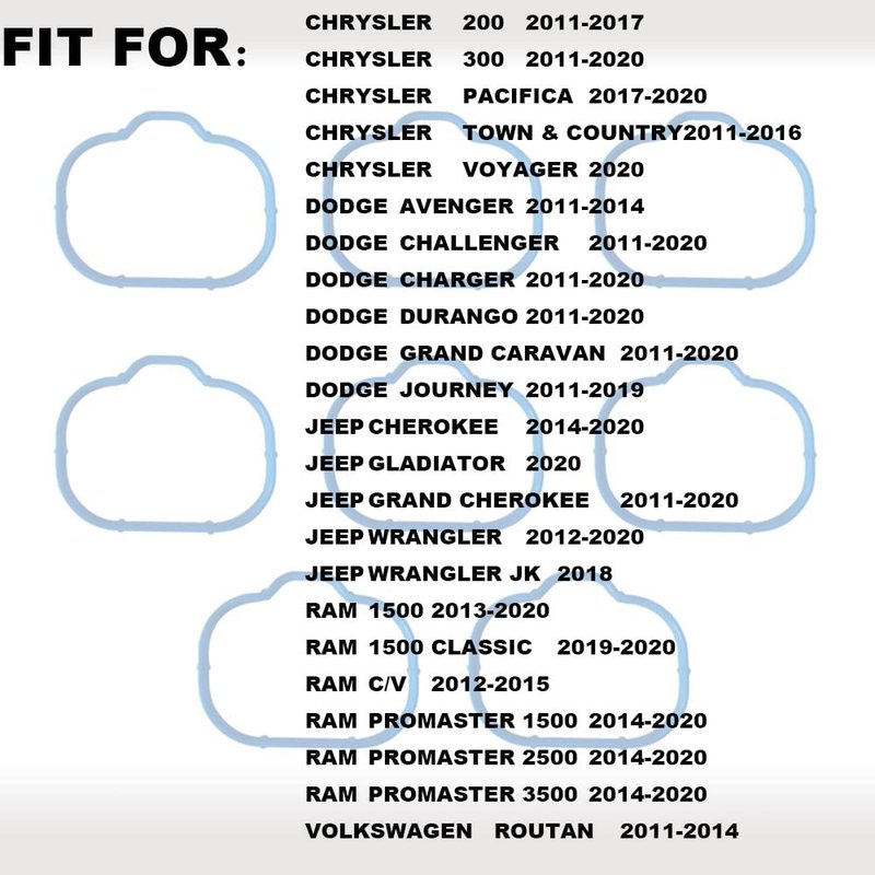 Intake Manifold Upper and Lower Gasket Set Fits for Chrysler 200 300 Town and Country 2011-2016 Dodge Avenger Challenger Charger Durango Jeep Grand Cherokee VW Routan Replaces
