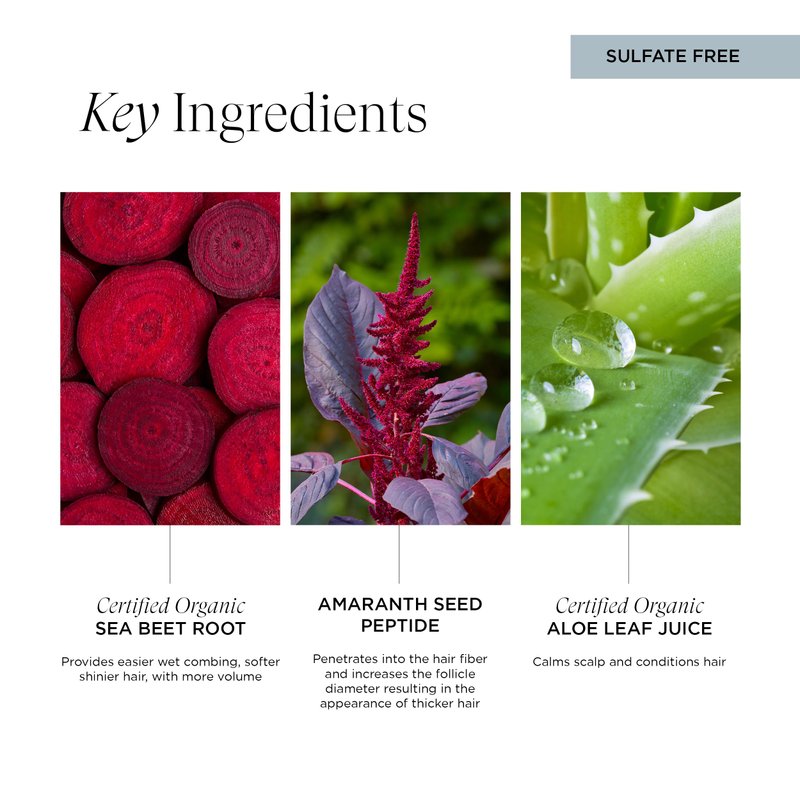 - Enhanced Shine: Contains Amaranth Extract and Organic Sea Beet to increase hair fiber diameter, adding gloss and movement