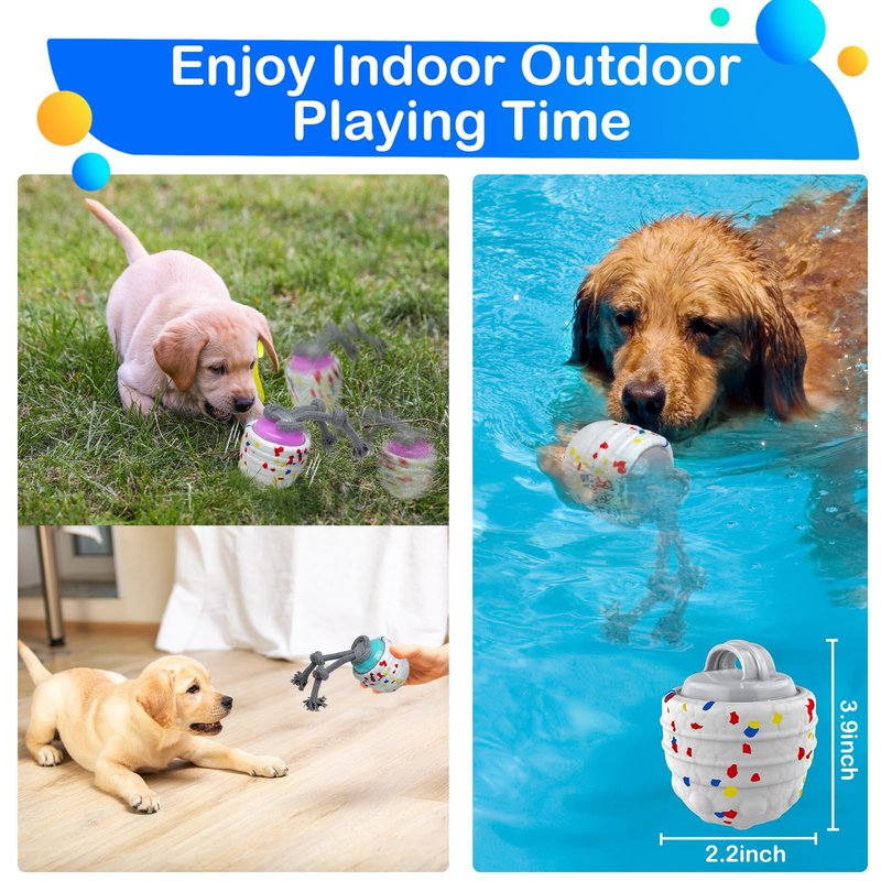 - 【Upgrade Dog Water Toy Ball】: Interactive dog toy with premium E-TPU lightweight, toxic-free material.The waterproof design makes this peppy pet ball for dogs can be played in the pool, lake, or beach.Tie a rope on the ball, make it easier for the dog to fetch retrieve it, this outdoor dog water toy helps keep you and your dogs engaged, entertained,active.Mentally stimulating toys for dogs,great for outdoor outside to play