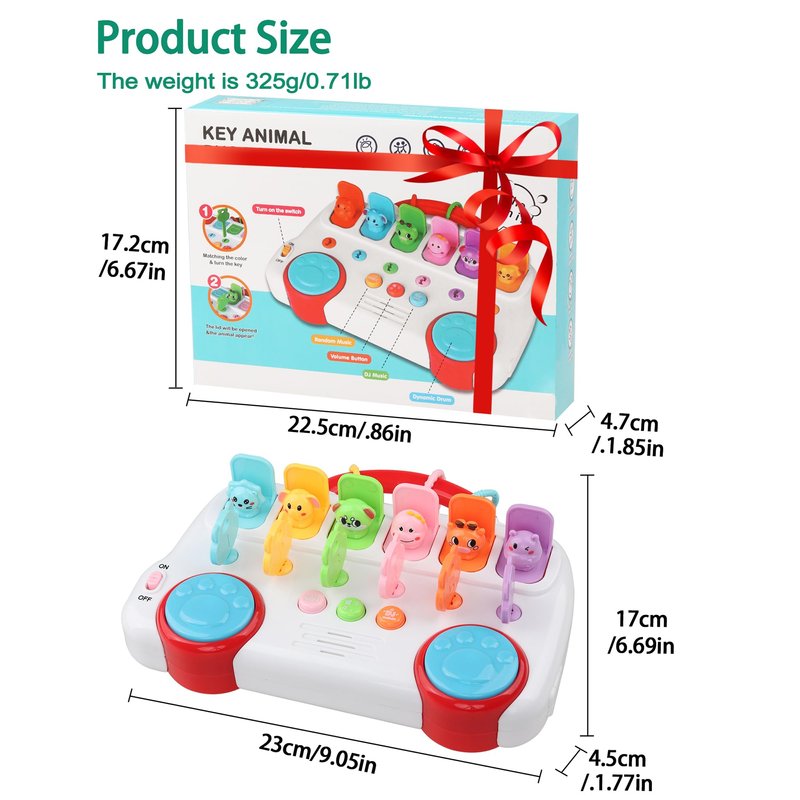 - Music Baby Pop Up Toy - Our baby toys comes with 3 play modes. 1.Quiet Mode: Without a battery, babies can eject animals by matching keys of the same color and rotating them to the right. 2.Music Mode: Install the battery and rotate the key to the far left to pop out and emits a wonderful music sounds 3.Instrument Mode: Beat the blue button below, the sound of the drum can be played, which can enhance babies finger flexibility and logical thinking of cause and effect