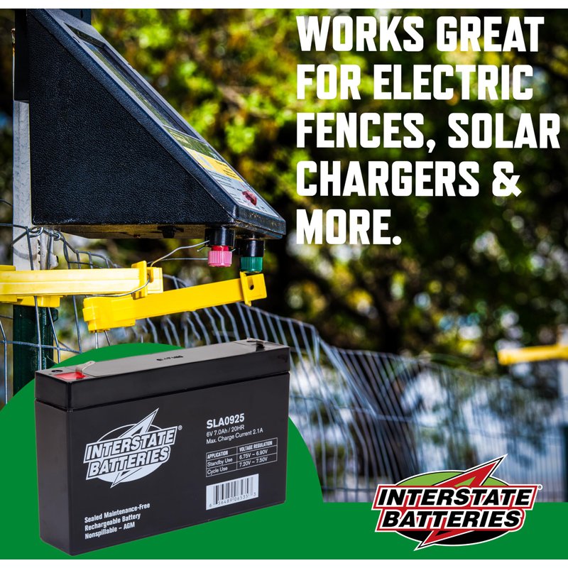 Interstate Batteries 6V 7Ah Battery (F1 Terminal) SLA AGM VRLA Rechargeable Replacement for Electric Fences, UPS Backup Systems, Solar, Medical Devices (SLA0925)