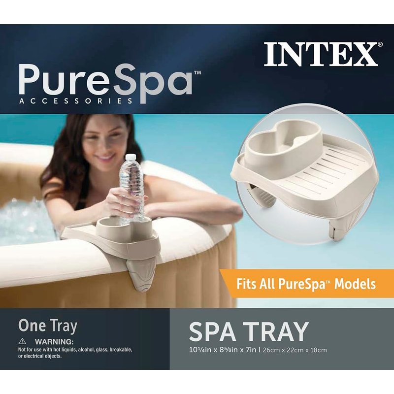 Intex 28500E PureSpa Attachable Cup Holder and Refreshment Tray Hot Tub Accessory for Select PureSpa Models, Holds 2 Standard Beverage Containers, Tan