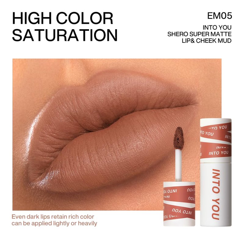 INTO YOU Matte Lipstick Lip Mud, Waterproof Long Lasting Smudge Proof Velvet Lip Stains, Multi-Purpose for Lip and Cheek, Non-Stick Cup Not Fade Lip Gloss Makeup Cosmetics Official Directly (EM05)