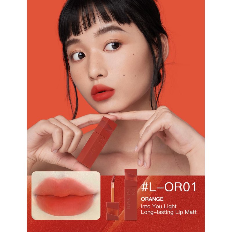 INTO YOU Matte Lipstick Velvet Lip Stain Lip Mud Long Lasting Waterproof Lipstick Lip Gloss Makeup Moisturizing Lipstick for Women(L-Or01)