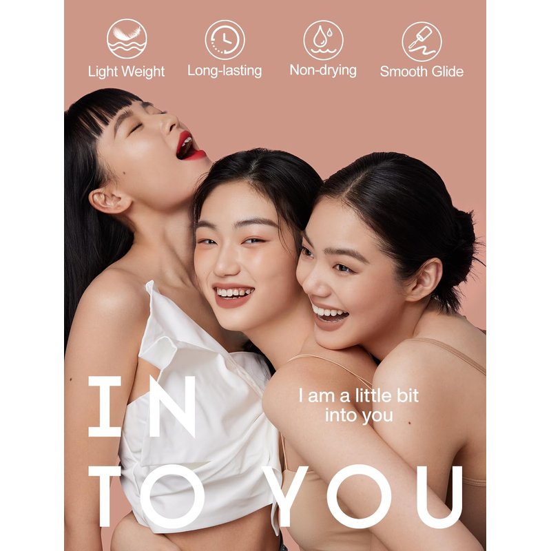 Introducing Into You Long-lasting Matte Liquid Lipstick with 9 expertly formulated shades to flatter all skin tones. Redefines everything you thought about matte with a weightless, long-wear, and waterproof formula that glides on smoothly and stays soft and comfortable all day. This nourishing, hydrating formula creates a velvety finish without drying or tightening from the inside out.