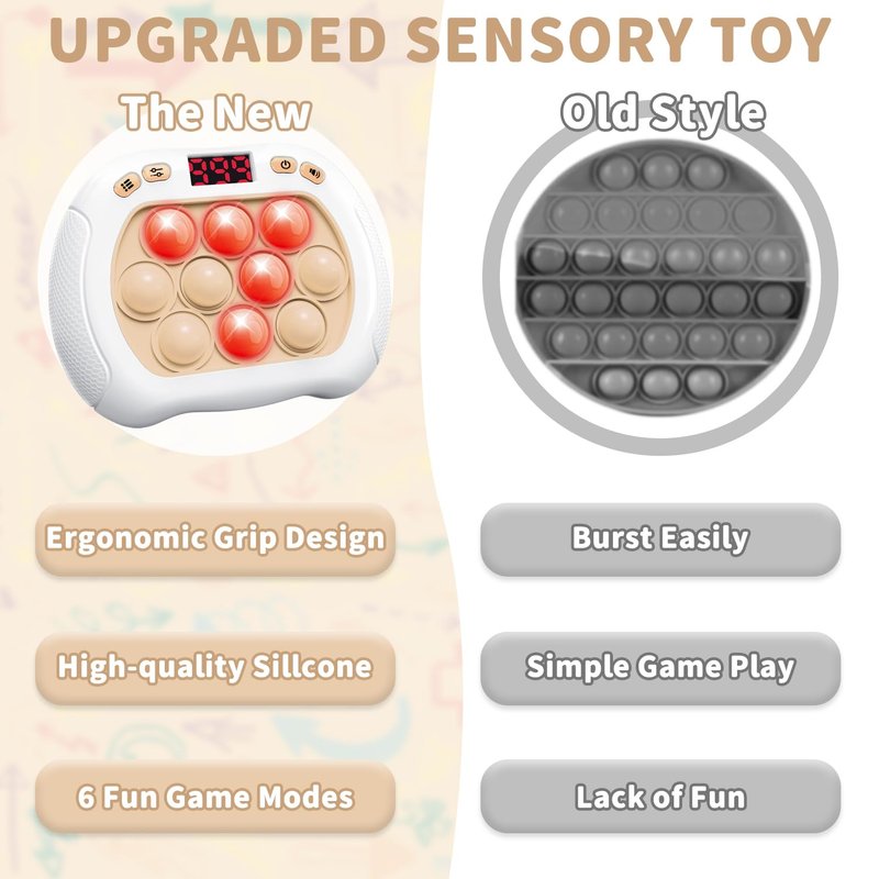 - 【Educational and Stimulating LED Screen】:Immerse yourself in educational challenges with an LED screen displaying an extensive 999 levels across various game modes. This quick push bubble game not only enhances children's concentration and motor skills but also fosters positive thinking and enhances hand-eye coordination. The vibrant lights and dynamic sound effects create a stimulating environment that promotes sensory development in a playful manner.
