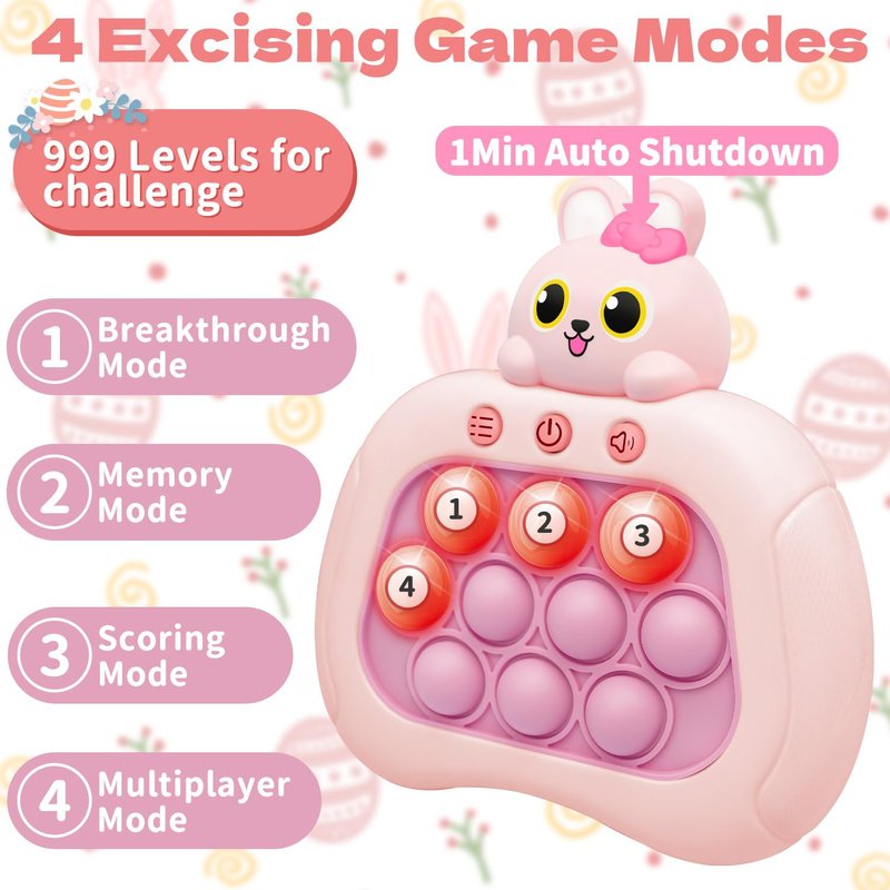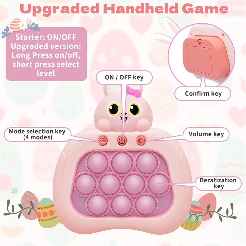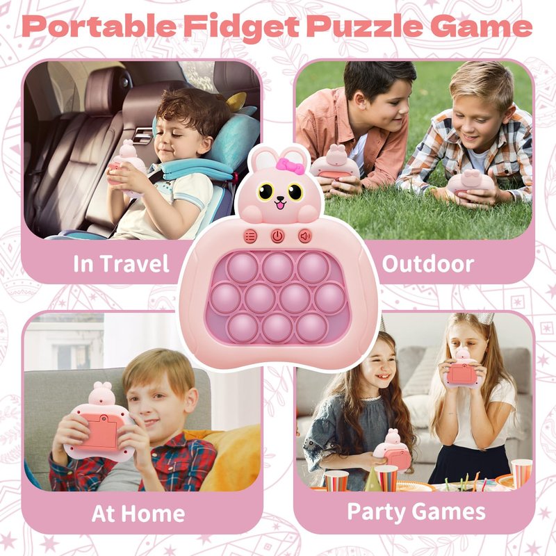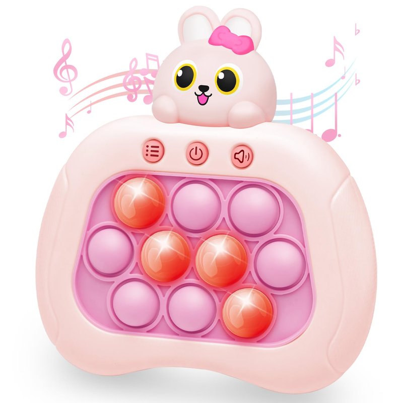 Intoypad Quick Push Pop Fidget Game Toys, Bunney Light Up Fidget Toy with 1 Min Auto-Off Electric Pop Bubble Game Controller Handheld Puzzle Sensory Toys Birthday Christmas Easter Gifts Toys for Kids